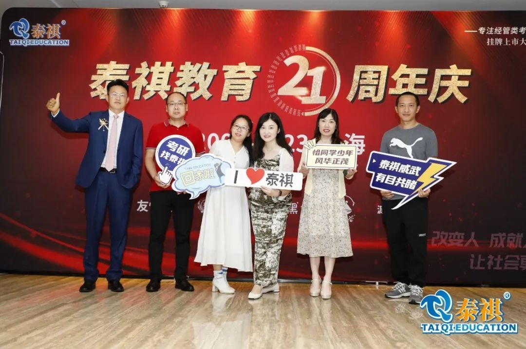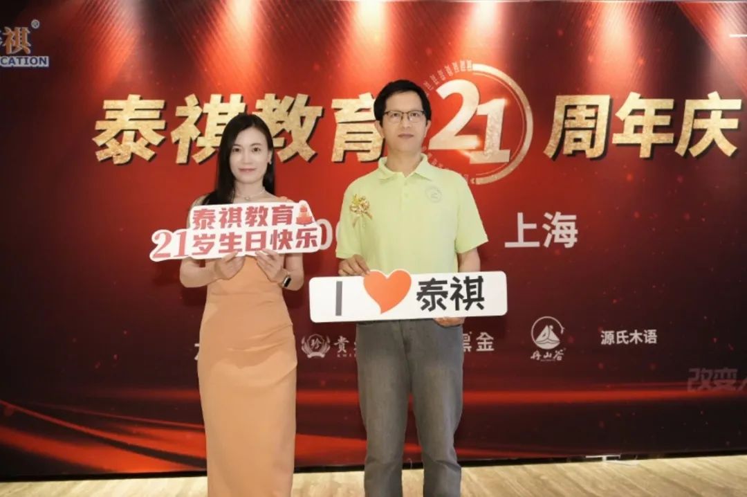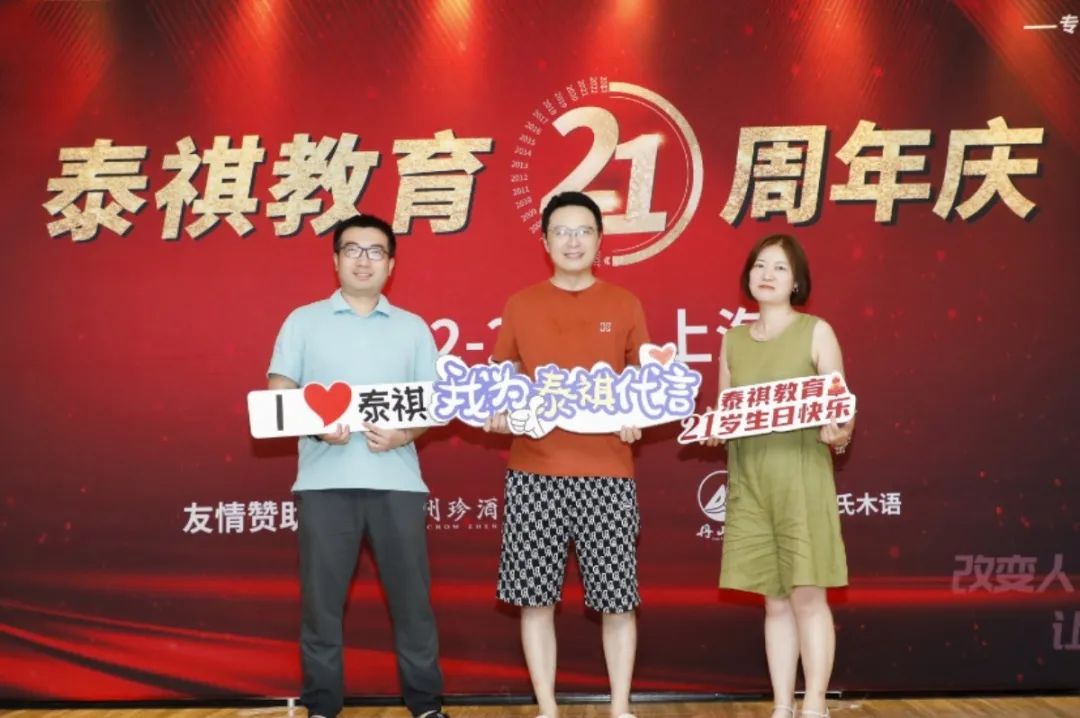 7月15日晚,泰祺教育二十一周年庆典在上海隆重举行。泰祺教育创始人、董事长刘庆梅先生与泰祺教育教职员工代表,上海交通大学、复旦大学、同济大学、上海财经大学、 华东理工大学、华东师范大学、上海外国语大学、 东华大学、上海理工大学、上海海事大学、上海电力大学、上海应用技术大学、上海师范大学、上海工程技术大学的各院系老师代表,泰祺战略合作方上汽集团,电气集团的领导代表,以及泰祺历届学员代表欢聚一堂,一起见证和分享泰祺二十一周年庆的喜悦与精彩。