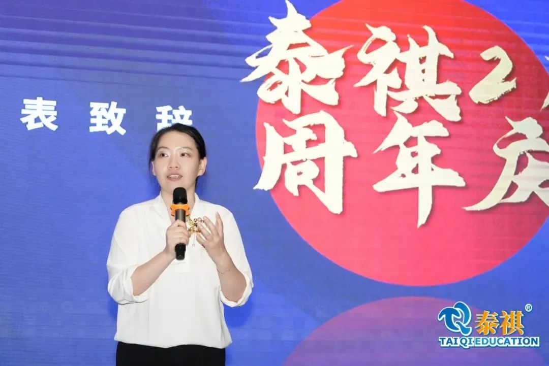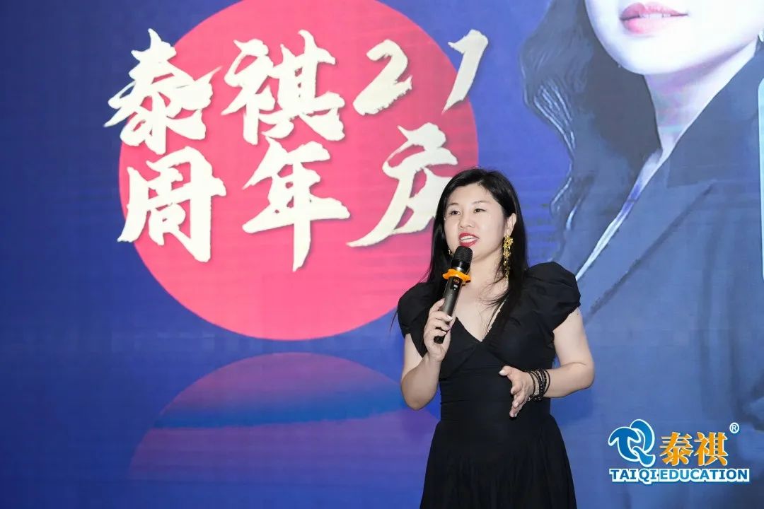 庆典伊始,泰祺教育创始人,董事长刘庆梅先生发表致辞。他代表泰祺教育向前来参加泰祺21周年庆典的校友,高校老师代表,及泰祺教职员工们表示热烈欢迎。