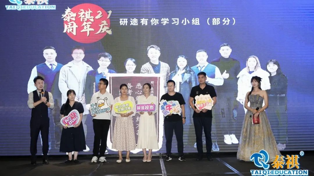 庆典现场,来自泰祺徐汇校区的“研途有你”小组分享了他们上岸研究生的喜悦,“研途有你”小组共有10人上岸,其中上岸交大1人,财大2人,同济4人,华理3人。他们在现场表达了对泰祺的感谢,以及对泰祺21岁生日的祝福。