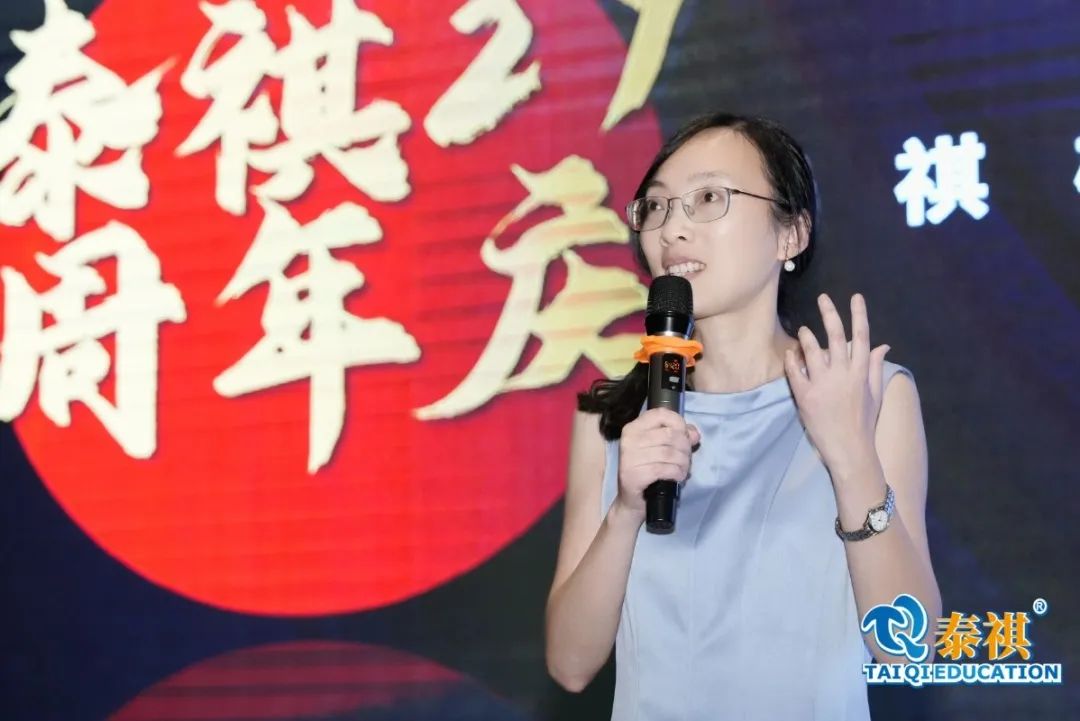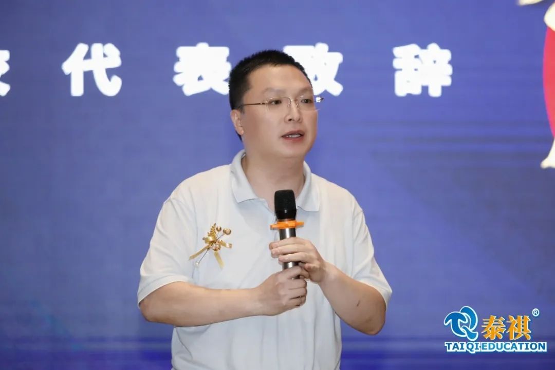 北海老师、李哲老师作为泰祺教育教师代表上台发言,他们分享了在泰祺教育工作的心路历程和收获,表达了对泰祺由衷的自豪感与荣誉感,感谢泰祺教育提供一个可以发光发亮的的平台,让他们能够影响更多的学生,帮助他们实现自己的梦想。