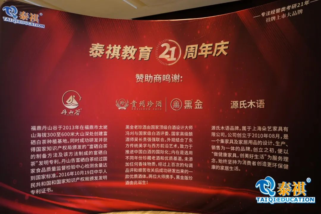 泰祺教育专注经管类考研二十一年,赢得了众多学员的长久支持,泰祺校友刘瑶、丁雨波作为优秀校友代表分别上台发言,分享了他们与泰祺结缘,因泰祺获得改变,与泰祺共成长的故事,表达了他们对泰祺21岁生日的祝福。