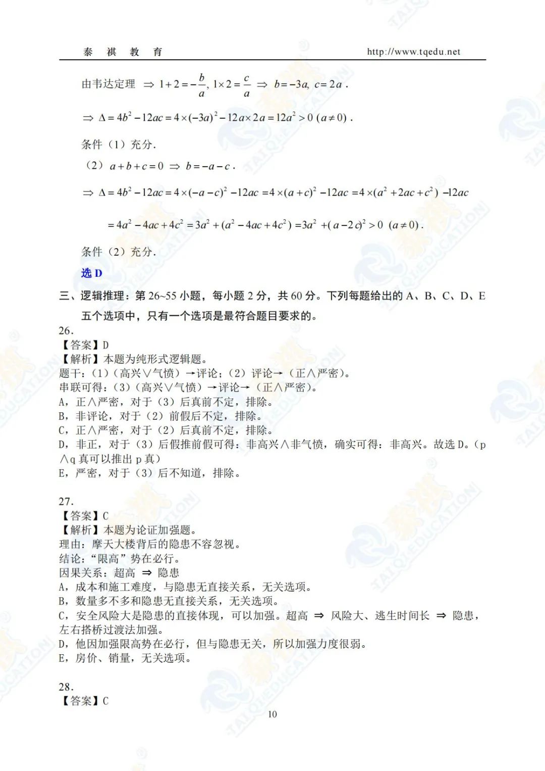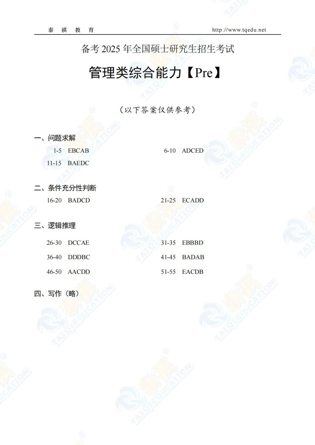 泰祺教育2025考研【管理类综合能力】Pre轮模考解析