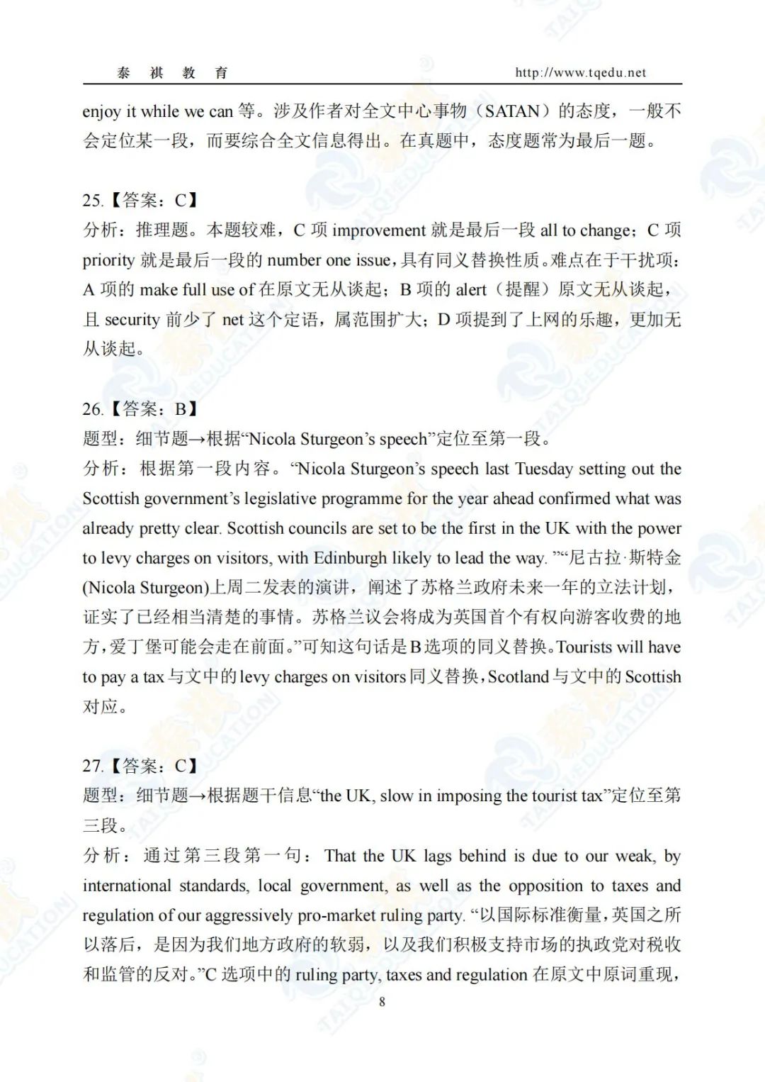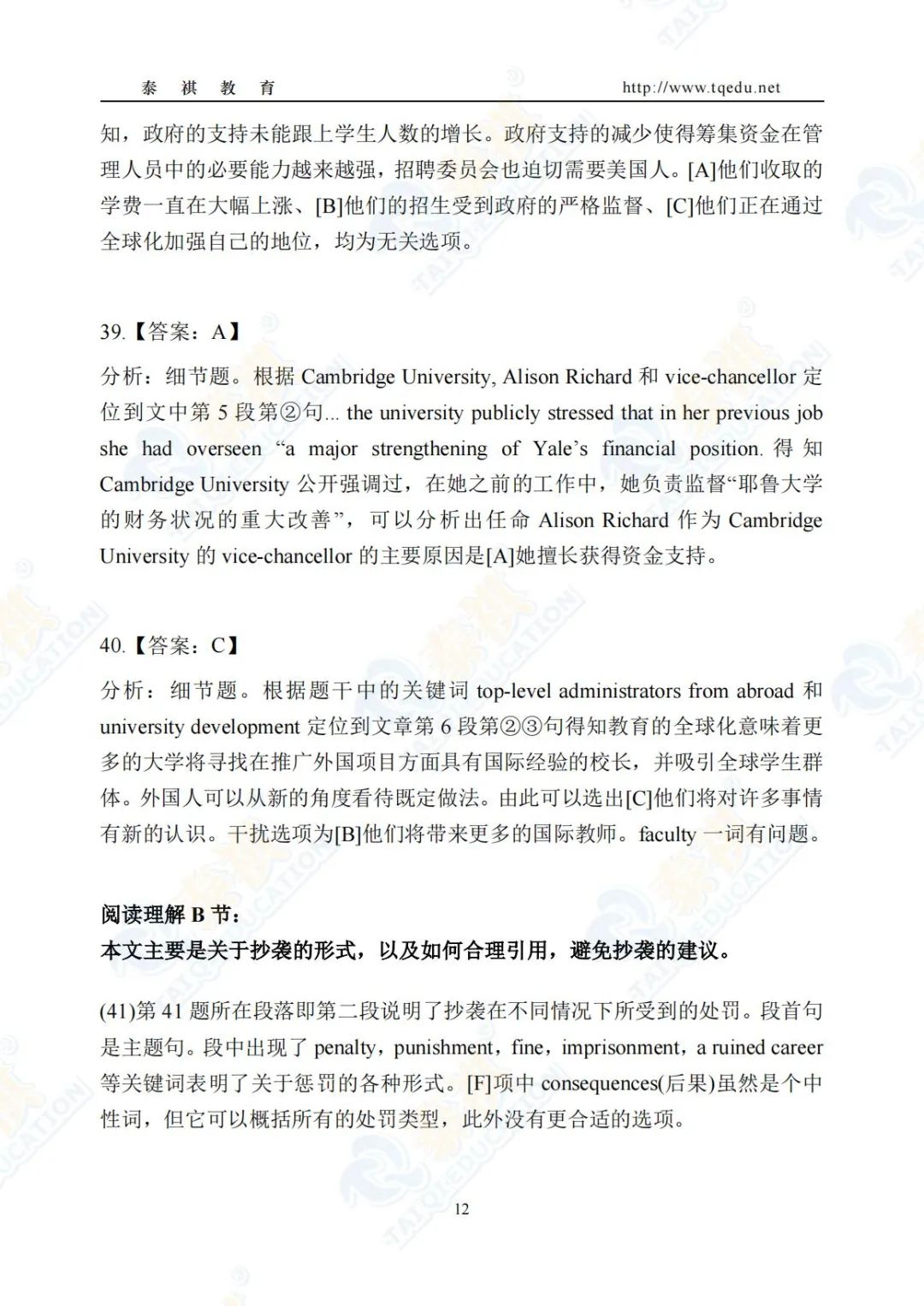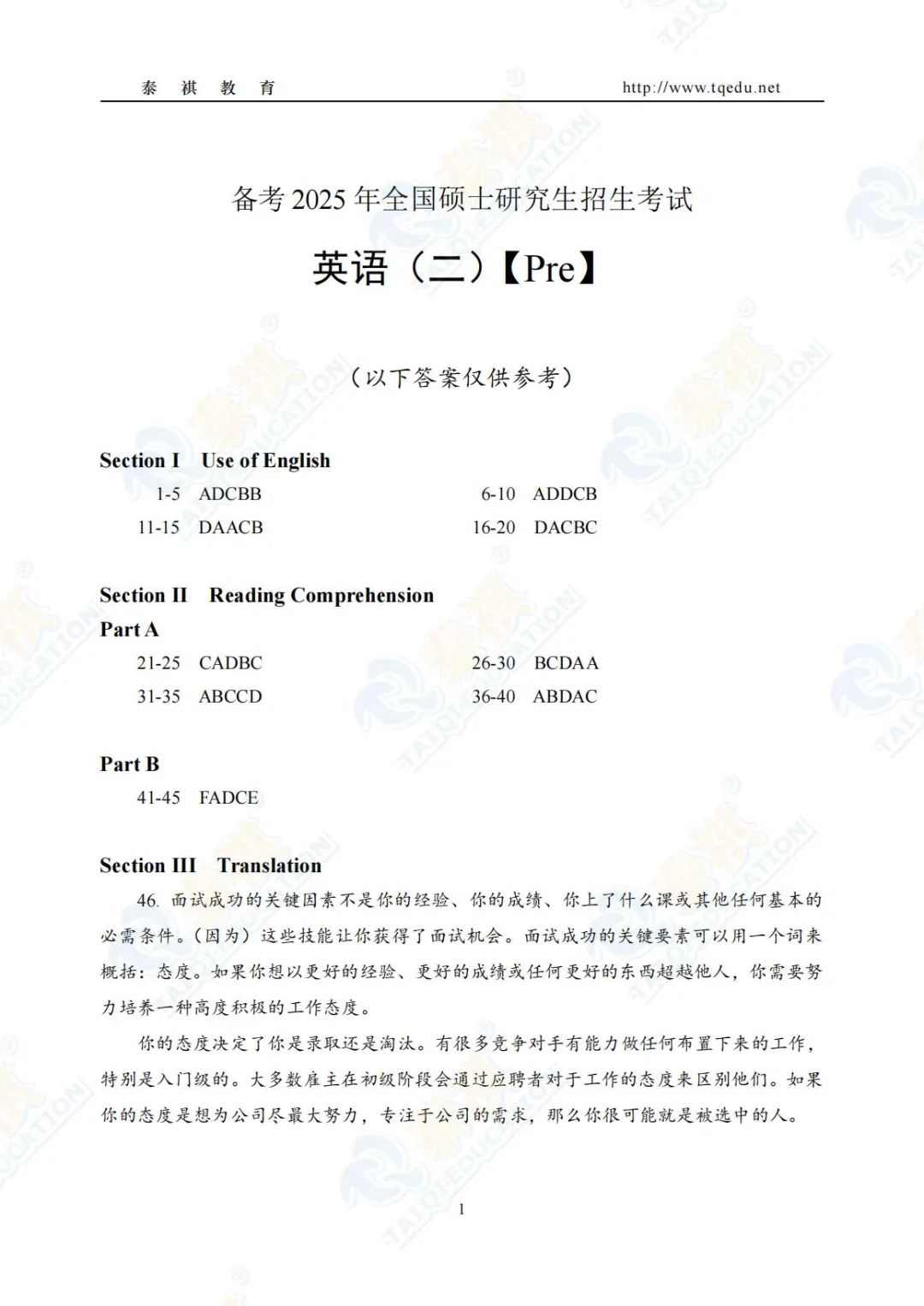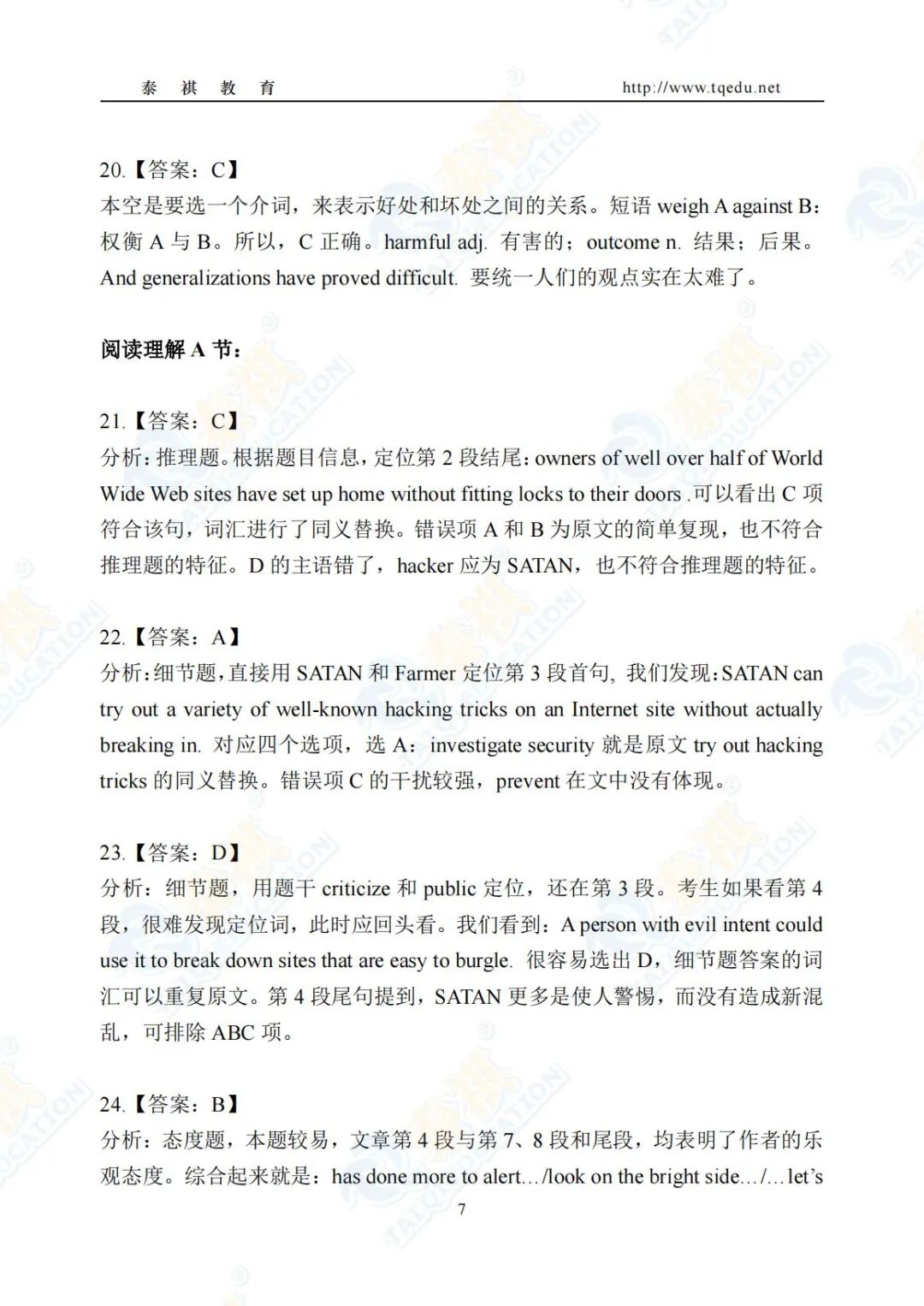 泰祺教育2025考研【英语二】Pre轮模考解析