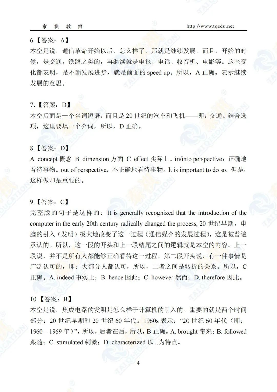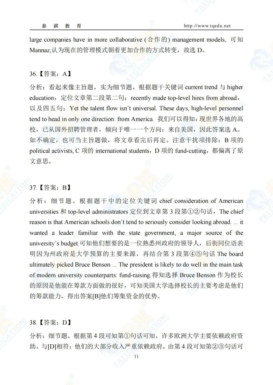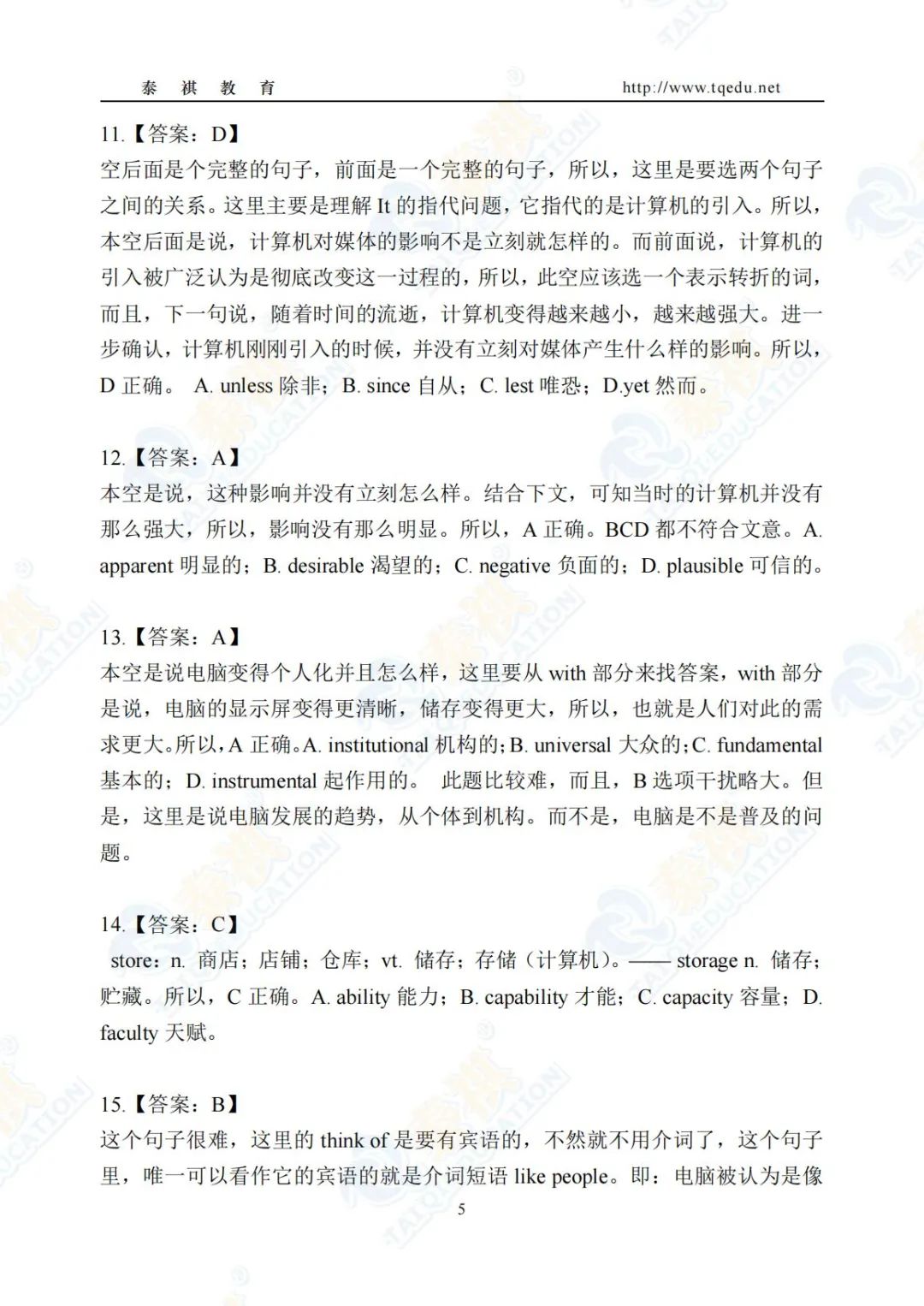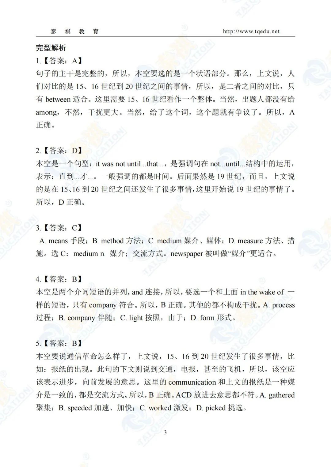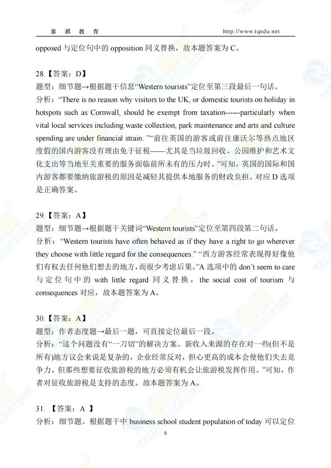泰祺教育2025考研【英语二】Pre轮模考解析