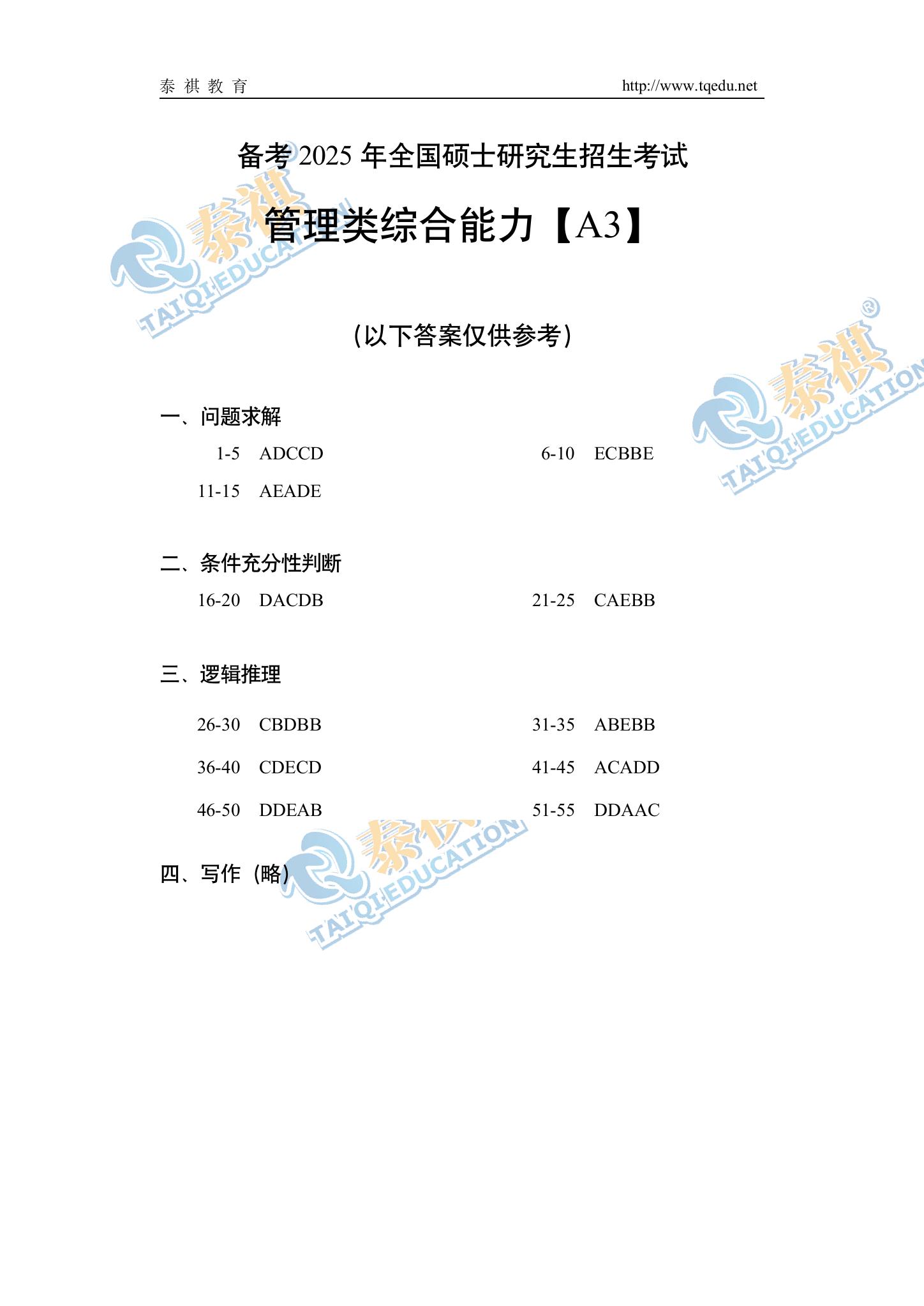泰祺教育2025考研【管理类综合能力】A3轮模考解析