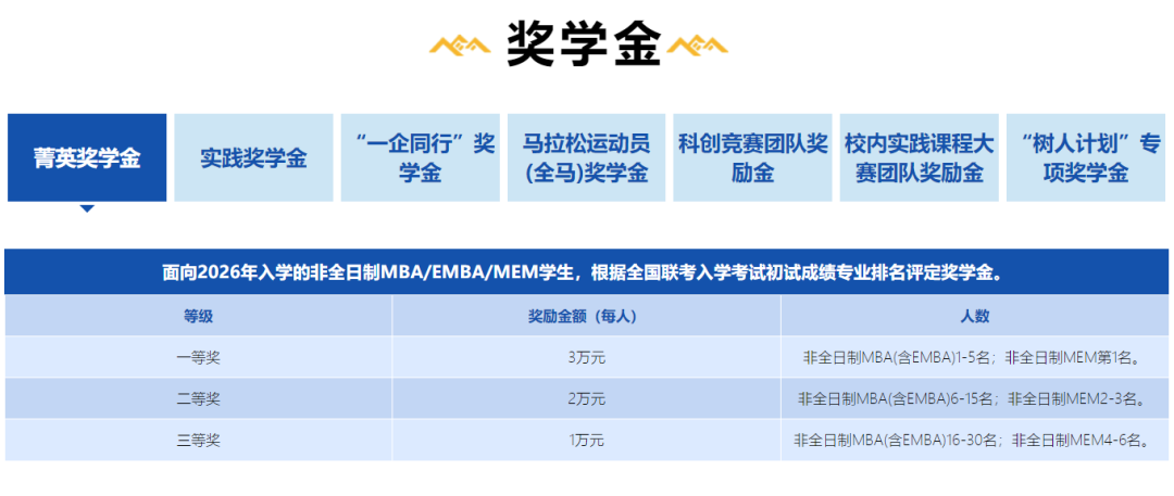 大连理工大学2026级MBA设置多项奖学金,从几千到几万元不等。
