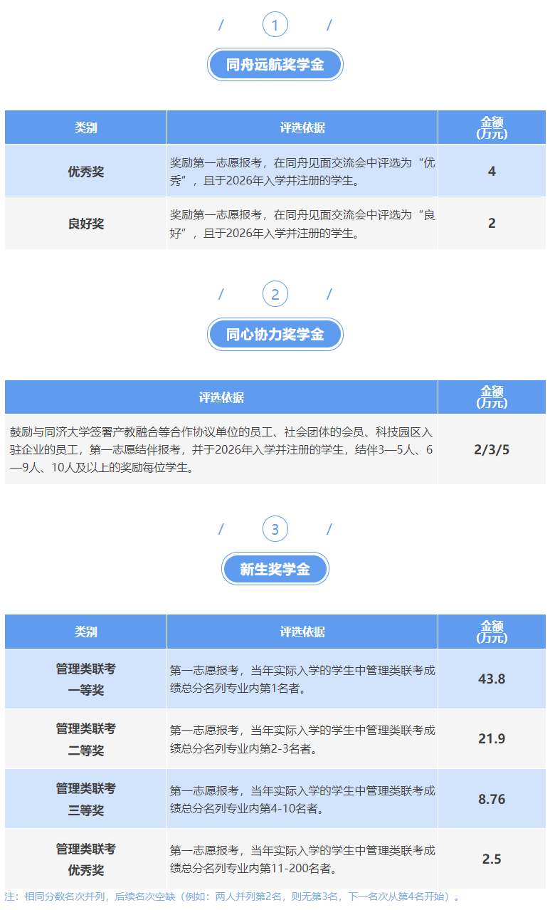 同济大学2026级非全日制MBA单项最高奖金43.8万,参考25级学费,就是100%学费奖励,奖励可以叠加,最高不超过学费总额。