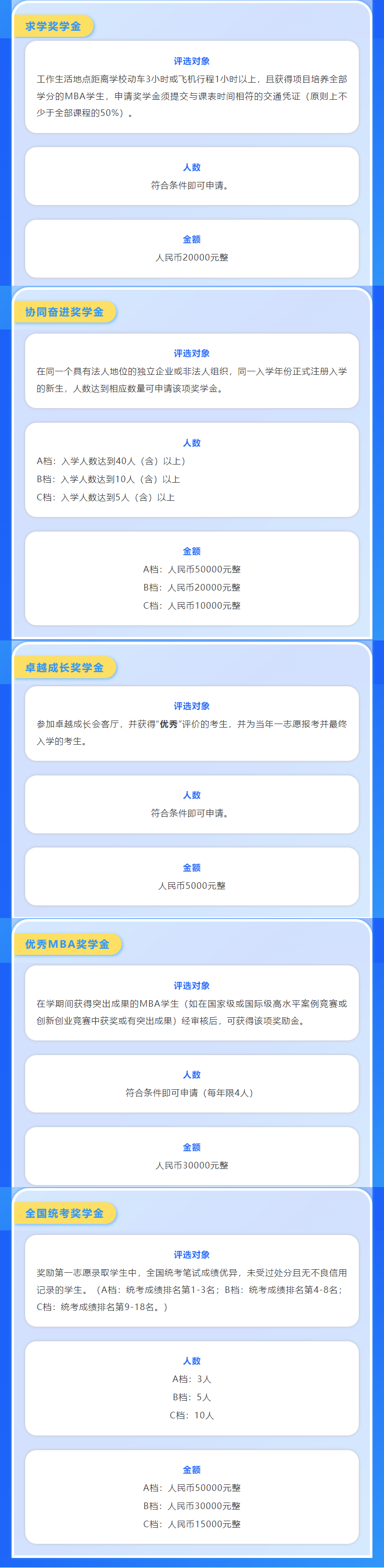 厦门大学2026级MBA奖学金也早就出炉了,各个档位奖学金几千到几万元不等。