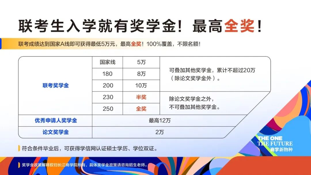 长江商学院2026级MBA过国家线就有5万奖学金,最高全额奖学金,并且不限制名额。