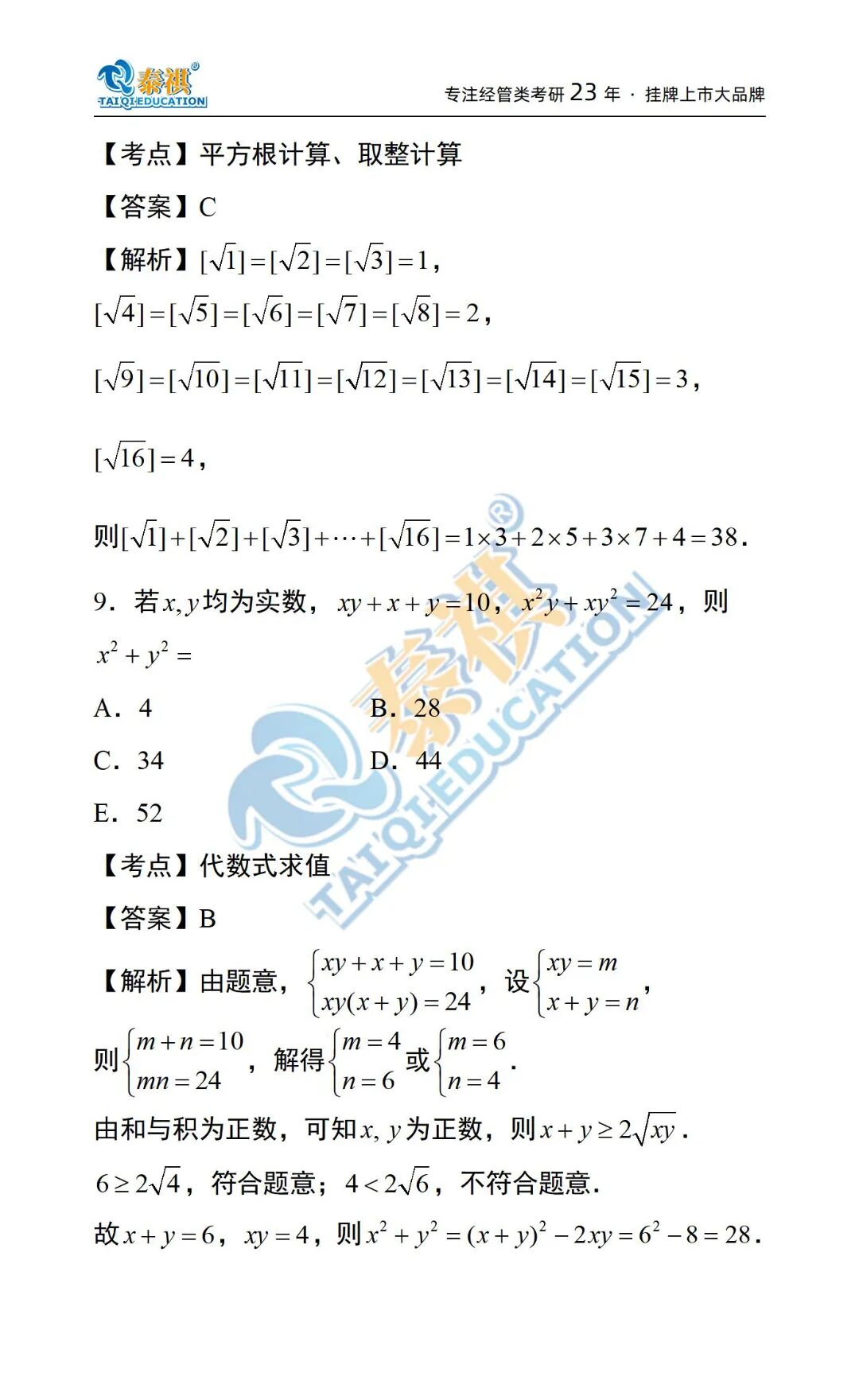 泰祺教育-数学教研组 解析