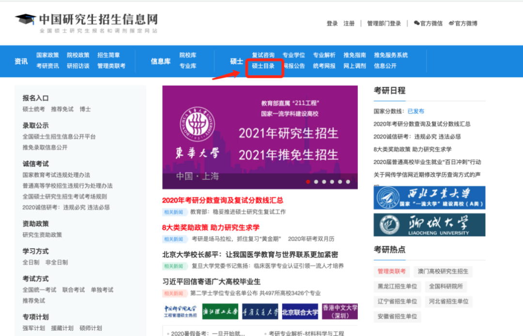 一、 点击官网硕士目录界面,会直接跳转至专业目录也就是硕士目录界面
