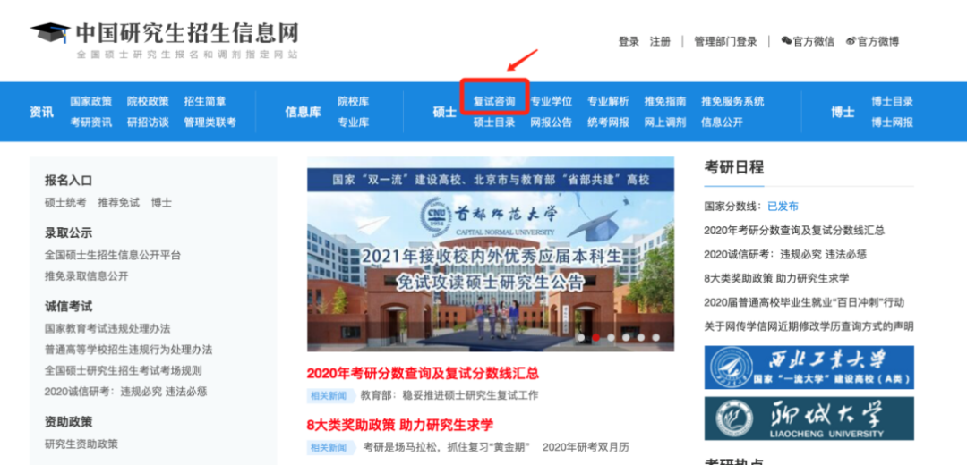 一、对于同学们来说,网报最让人头疼的就是报考点选择问题,到底我应该选择哪个报考点考试?这个问题你可以点击研招网导航栏“网报公告”这个选项: