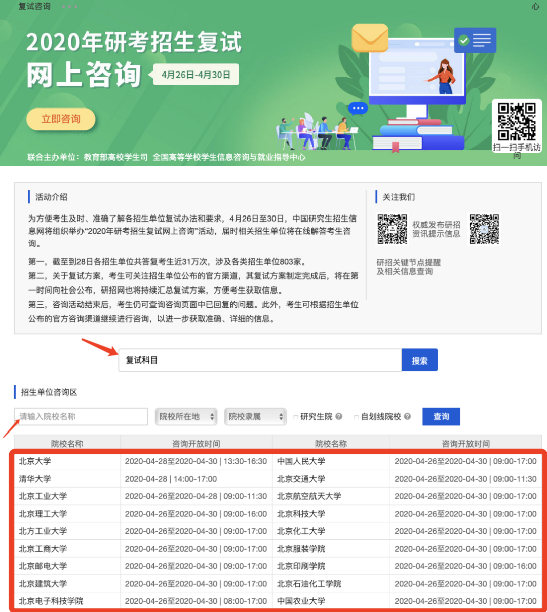 二、在院校咨询开放时间段,同学们也可关注自己报考的院校进行提问。即使不在咨询时间段,同学也可以通过关键字搜索已有问题。